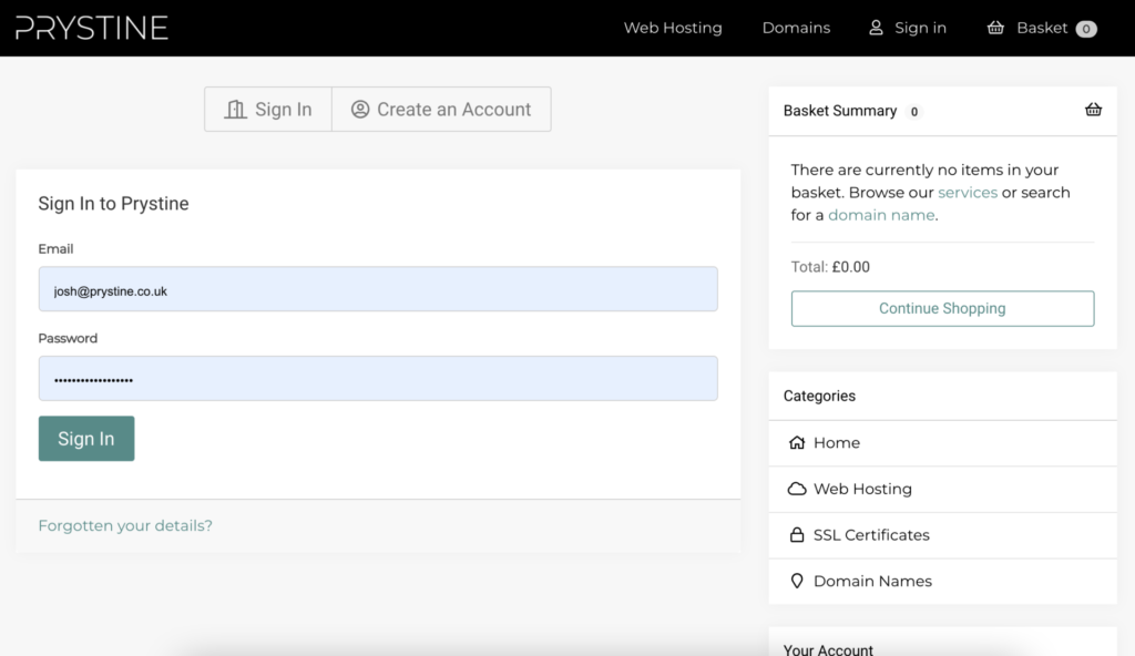 As a hosting or domain customer of Prystine, you'll have full access to your services via our control panel.